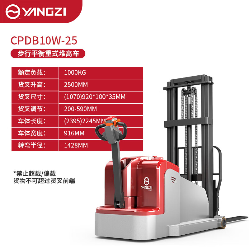 揚(yáng)子電動(dòng)叉車平衡重堆高車步行式無腿堆垛車CPDB10W-25