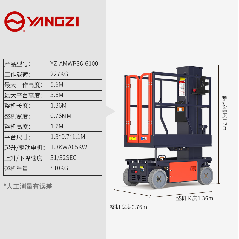 揚(yáng)子自行式套筒式高空平臺(tái)YZ-AMWP